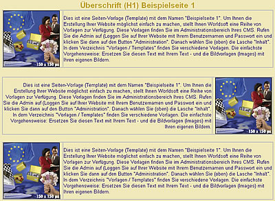 Tabellen eignen sich hervorragend, um ein interessanteres Layout zu gestalten. Gerade wenn Sie zur Auflockerung der Texte Bilder einfügen, bieten sich Tabellen an. Nachfolgend als Beispiel unsere Beispielseite 3, die als Vorlage in der Worldsoft-CMS enthalten ist: |